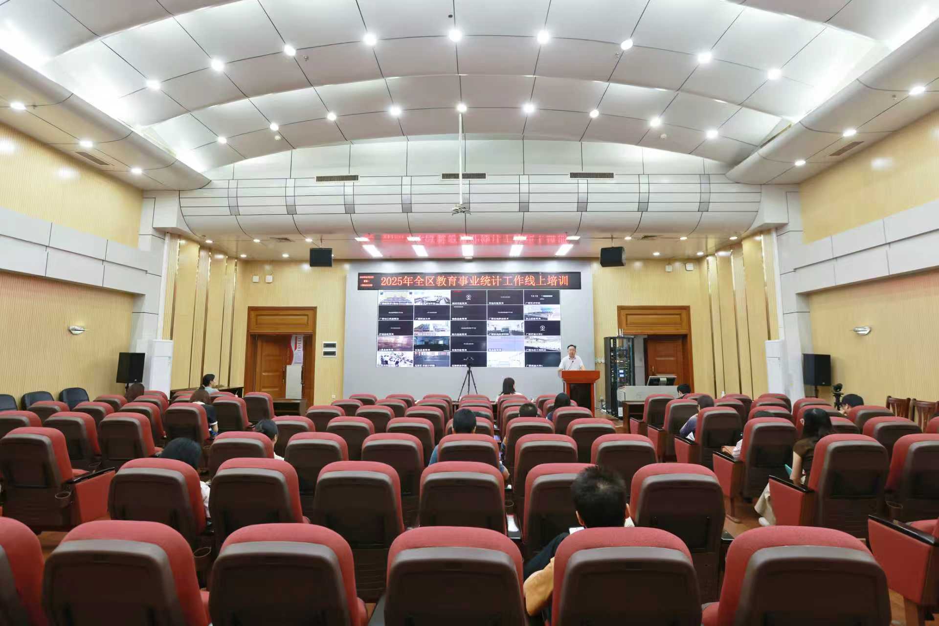 9月22日下午,自治区教育厅组织召开2025年全区教育事业统计工作线上培训会。我校在校本部综合楼9楼报告厅设立分会场。发展规划处有关负责同志及相关统计单位统计人员共30余人参加了培训。
